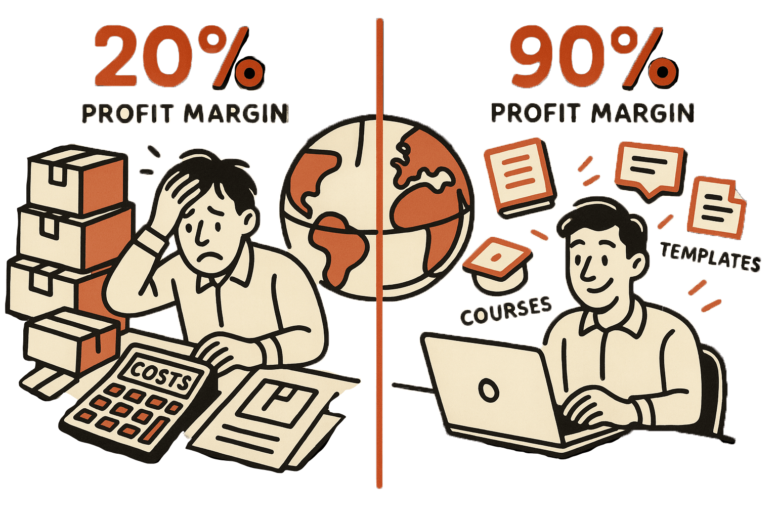 Unlike traditional businesses requiring significant upfront investment, digital product selling offers an incredibly low barrier to entry. You can start with as little as $50-100 while enjoying profit margins that often exceed 80-90%. Once you acquire a digital product, each sale generates nearly pure profit with no additional manufacturing costs.