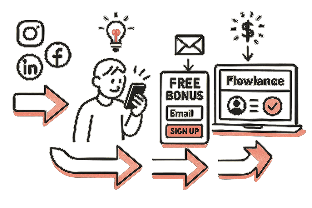 Social media marketing becomes significantly simpler when you only need to promote a single profile link. Create content that provides value to your audience while naturally leading them to your Flowlance storefront.