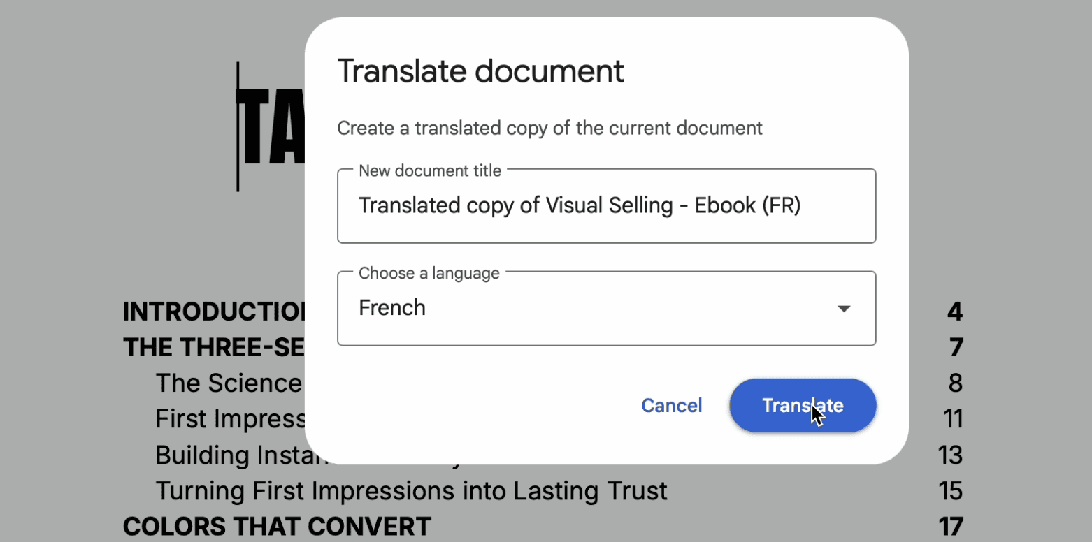 Upload your ebook, guide, or checklist into Google Docs so it’s ready to edit and translate.
