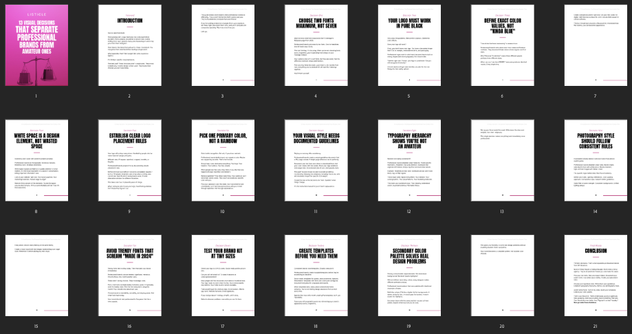 Listicle designed to help your customers make smart visual branding decisions that create a clean, professional look and build instant trust.